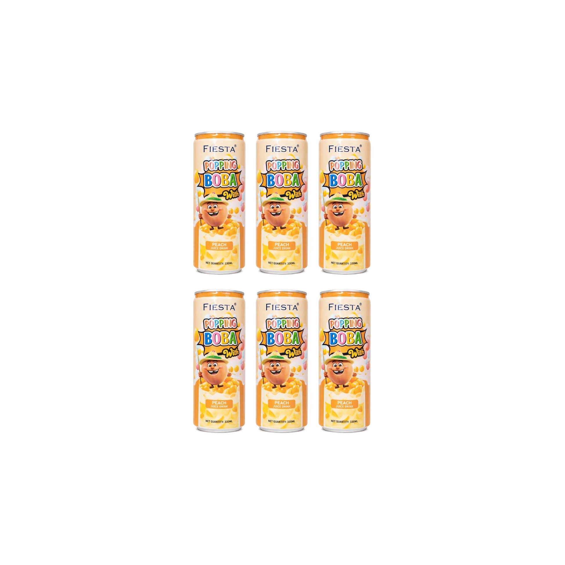Fiesta Popping Boba with Peach juice Can 330ml (Pack of 6)