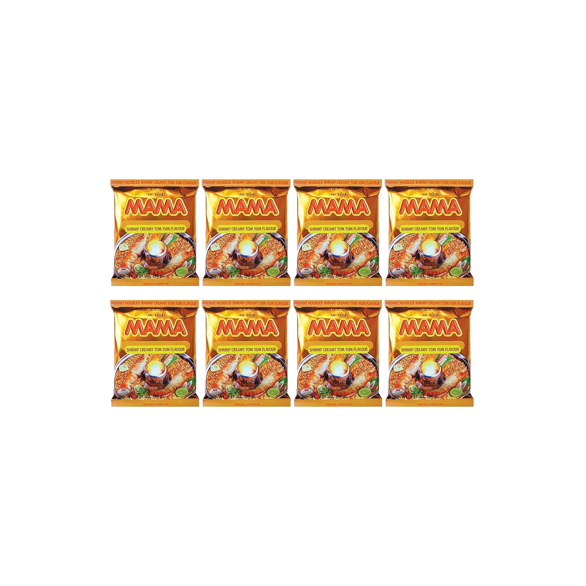 MAMA Shrimp Creamy Tom Yum Flavoured Instant Noodles 90g (Pack of 8)